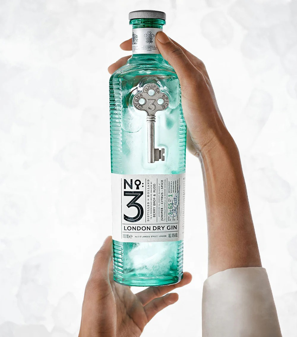 It is this historic address that inspired the name for No.3 London Dry Gin, a gin born of the merchant’s three centuries of experience. The key on the bottle was inspired by the key to the lock in the door of the parlour at the heart of the shop of No.3. Just as the liquid itself is steeped in tradition, so too is the high shouldered green bottle in which No.3 finds itself, inspiration being drawn from the open pontil gin bottles that date back to the 17th century.